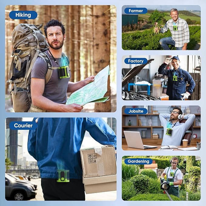 - Portable & Compact Design: Ideal for various outdoor activities like hiking, camping, or working in hot environments, this cooling fan portable is lightweight and compact. Clip it on your waist, shirt, or backpack for cooling wherever you go. The outdoor personal fan is easy to use as a portable clip on fan, portable belt fan, or portable outdoor fan.