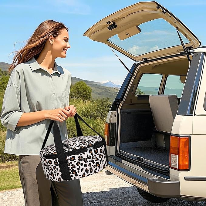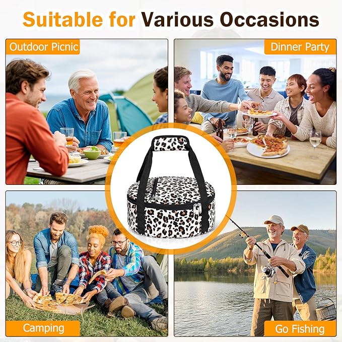 Round Insulated Casserole Carrier, Pie Carrier Bag, Portable Casserole Carrier for Hot or Cold Food Lunch Tote Warmer or Cooler Bag, Lunch Bag for Parties Picnic, Fits 12.5" Baking Dish, Leopard