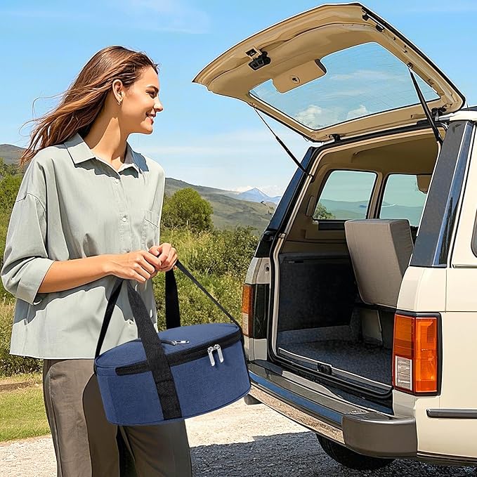 - 【Multi-function】This casserole carriers for hot or cold food is perfect for a wide range of occasions and events. It is very suitable for family gatherings, office gatherings, outdoor picnics, camping, barbecues, and more! Whether you need to transport casseroles, pizza, desserts, or beverages, this round insulated food carrier can meet your needs.You'll love the convenience and versatility of this hot food bag!