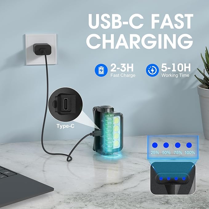 - Waterproof and 10 Lighting Modes: The head lamp features an IPX6 waterproof and shock-resistant design ensures it withstands rain, splashes, and accidental drops, making it your go-to companion for camping, fishing, night hiking, and beyond. With 10 lighting modes—including 5 key modes (strong beam, medium beam, slow white flash, red beam, and SOS red mode) and 5 sensor-activated modes—you can tailor the light to your exact needs. Whether you’re navigating trails, fixing equipment, or signaling for help, this rechargeable headlamp adapts instantly to your environment