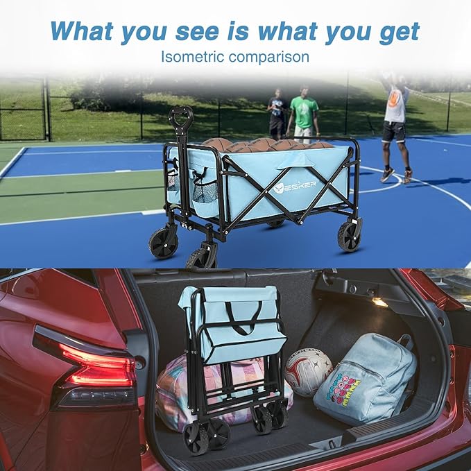 Yesker Foldable Wagon - 220lbs Collapsible Garden Carts with All Terrain Wheels for Outdoor Camping Sports Shopping Gardening - Heavy Duty Portable Utility Trolley (Blue)