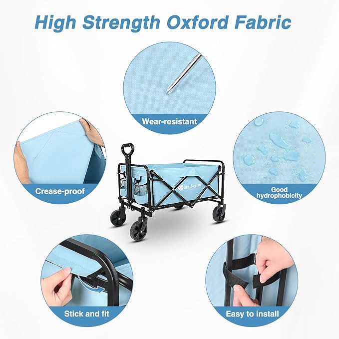 - Durable & Sturdy Construction - Built with a robust iron frame and 600D Oxford fabric, this foldable wagon is designed to withstand heavy loads and rough terrains, ensuring long-lasting performance.