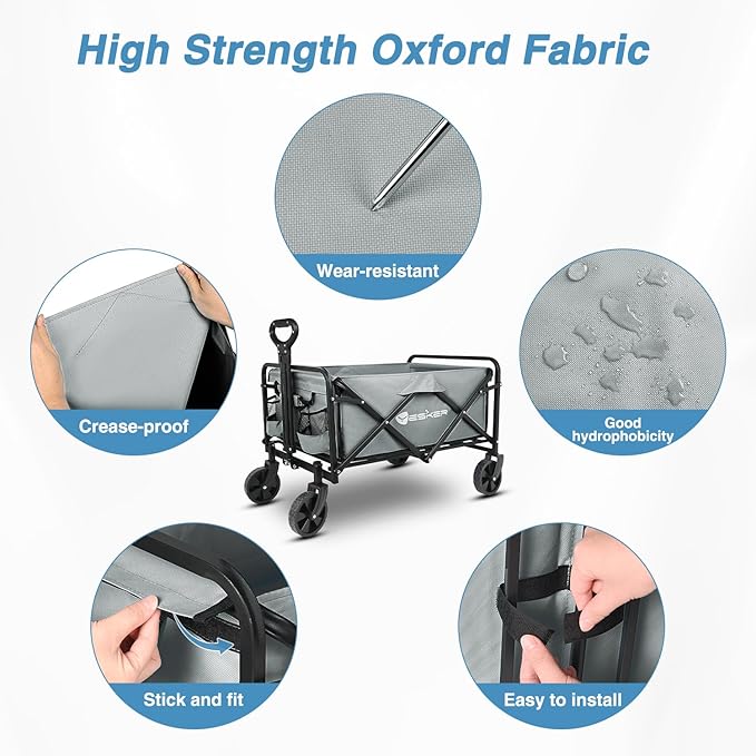 - Durable & Sturdy Construction - Built with a robust iron frame and 600D Oxford fabric, this foldable wagon is designed to withstand heavy loads and rough terrains, ensuring long-lasting performance.