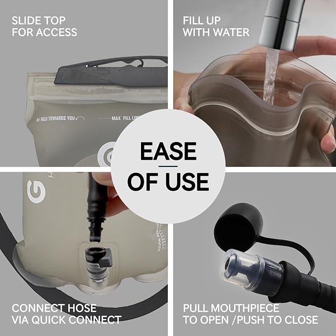 - 【Cleaning Made Simple: Spend Less Time Scrubbing, More Time Exploring】 The extra-wide mouth opening allows for effortless filling and thorough cleaning. Our included cleaning brush kit ensures a hygienic and fresh water bladder, so you can focus on your adventures, not on chores.