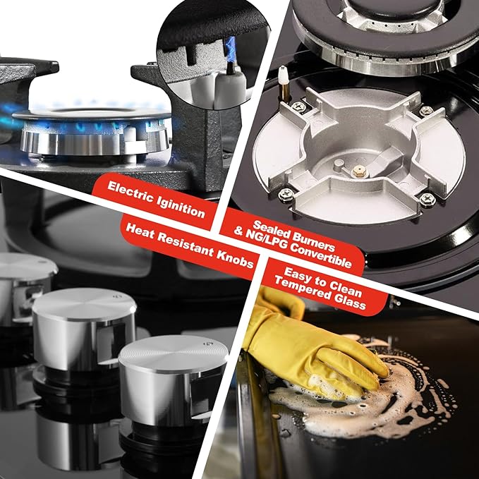 - โจ Tempered Glass Gas Stove Top โ Sleek, Durable, and Easy to Clean The 30 inch gas stove features a black tempered glass surface thatโs heat and corrosion-resistant, easier to clean than stainless steel, and adds a modern touch to your kitchen. Smooth edges prevent debris from accumulating, making wipe-downs effortless.