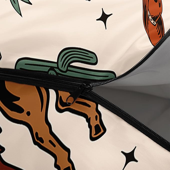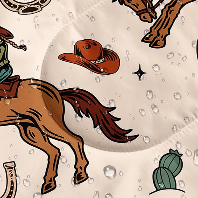 - Themed on classic western cowboy elements, the sleeping bag is printed with realistic cowboy hats, boots, lasso, cowboy badges and other patterns, with bright colors and a sense of hierarchy, as if the Wild West is condensed in the sleeping bag.
