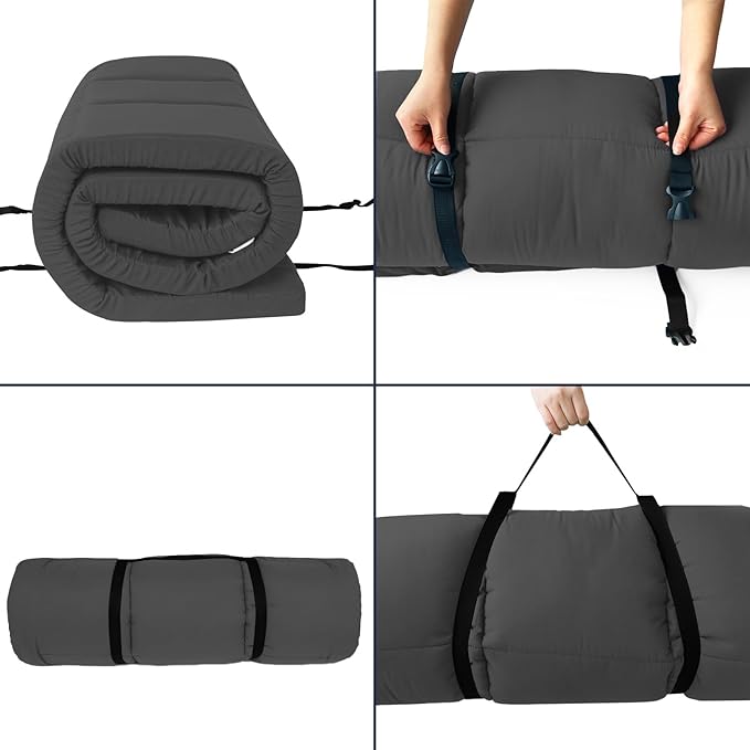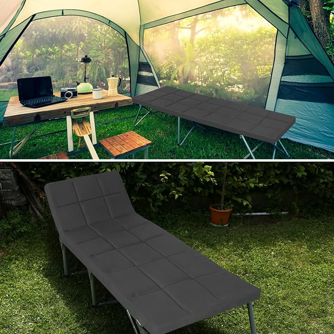 - Perfect Size & Moderate Filling: The camping cot pad open size is 75"x30"x2", wider and much thicker than usual, more comfortable to use together with the camping cots or lounge chaise chairs. Camping mattress pad for sleeping are filled with reasonable amount of polyester fiber which offers your the support during rest, along with the right softness and comfort, too.