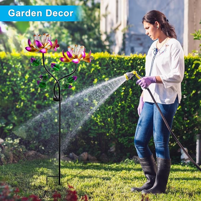 - Solar-Powered Kinetic Elegance: Watch the dual blue lotus petals glide effortlessly with every breeze! This 55-inch sculpture harnesses sunlight to spin smoothly day and night, creating a mesmerizing dance of light and shadow—no electricity or batteries needed.