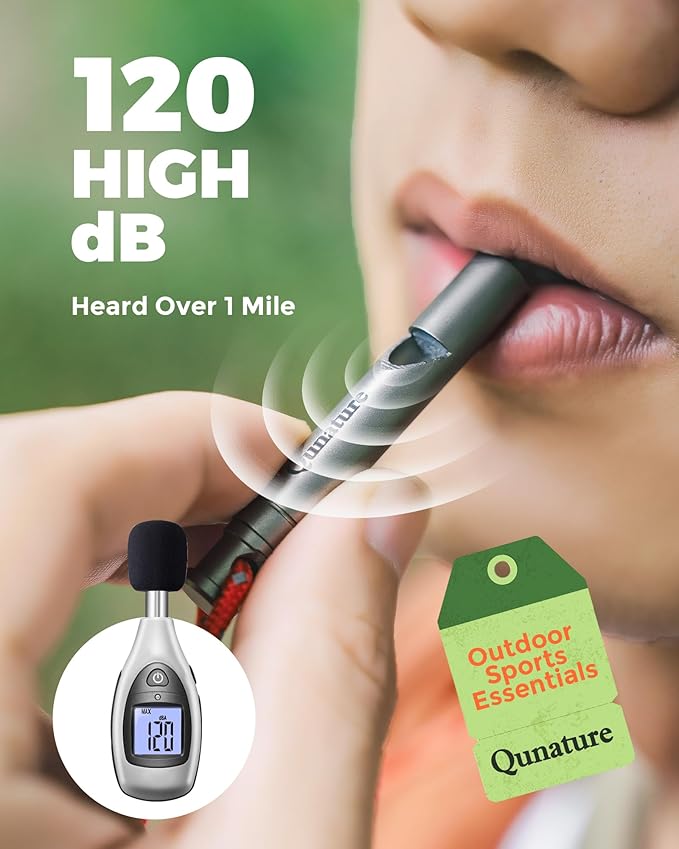 - Qunature Emergency Titanium Whistle Survival Keychain Whistle 120 Decibel with Lanyard for Kids Rescue Dog Training Outdoor Camping Hiking Coaches Sports Keychain Whistle
