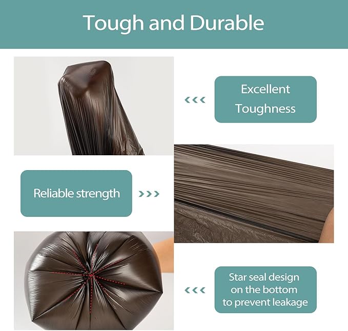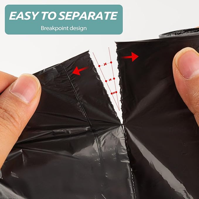 - Super Strong & Leakproof – No More Messy Spills: Made from ultra-durable garbage bags material with a reinforced bottom seam, these trash bags resist tears, punctures, and leaks. Whether you’re disposing of wet bathroom waste, kitchen scraps, or pet litter, these small trash bags will keep your bin clean and odor-free.