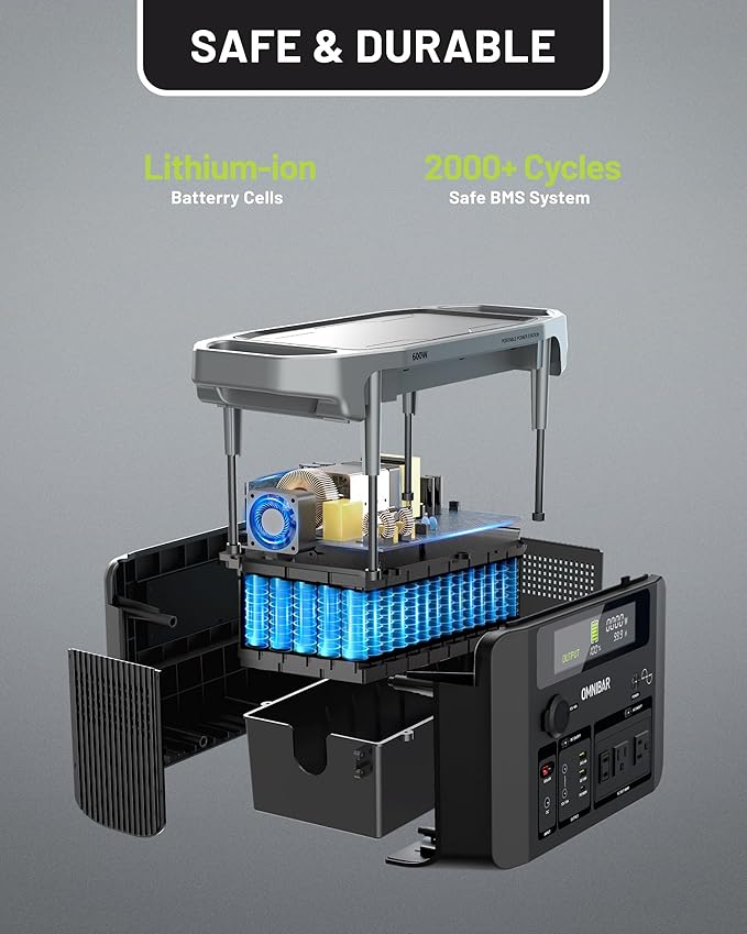 - Included Components : AC charging cable, Car Charging Cable, Omnibar 600W Portable Power Station, User Manual