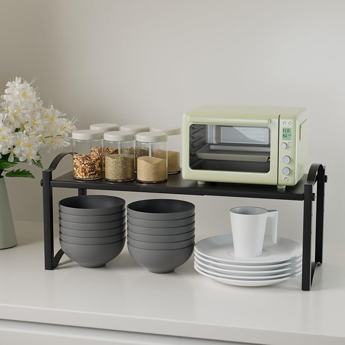 - 【Efficient Countertop Organization 】– Maximize vertical space with our expandable shelf! Neatly store cups, plates, spice jars, cans, and other kitchen essentials, keeping everything tidy and clutter-free. The perfect countertop organizer for a well-arranged kitchen.