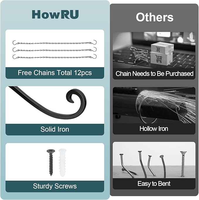 - ?�Customer-Centric Convenience??Free iron chains provide you with more diverse ways to use our product. HowRU promises that our hanger bracket and chains are premium. If you have any questions about our products in the purchase process, please feel free to contact us. We will give you a satisfactory reply as soon as possible.