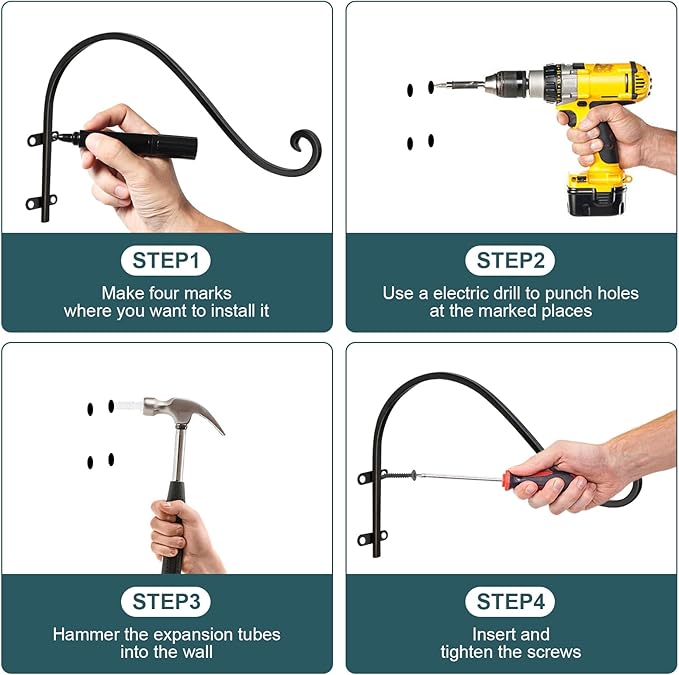 - ?�Stable Plant Hanger Hook??Four screws provide high load-bearing capacity and higher stability. Iron screws can not only withstand more weight without deformation, but also ensure that the plant wall hanger is more stable and not easily tilted. Plant hanging hook can better cope with windy weather, so it is suitable for outdoor use and is a good helper for decorating your courtyard.
