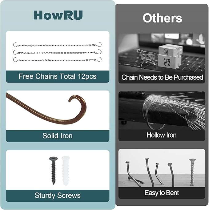 - ?�Customer-Centric Convenience??Free iron chains provide you with more diverse ways to use our product. HowRU promises that our hanger bracket and chains are premium. If you have any questions about our products in the purchase process, please feel free to contact us. We will give you a satisfactory reply as soon as possible.