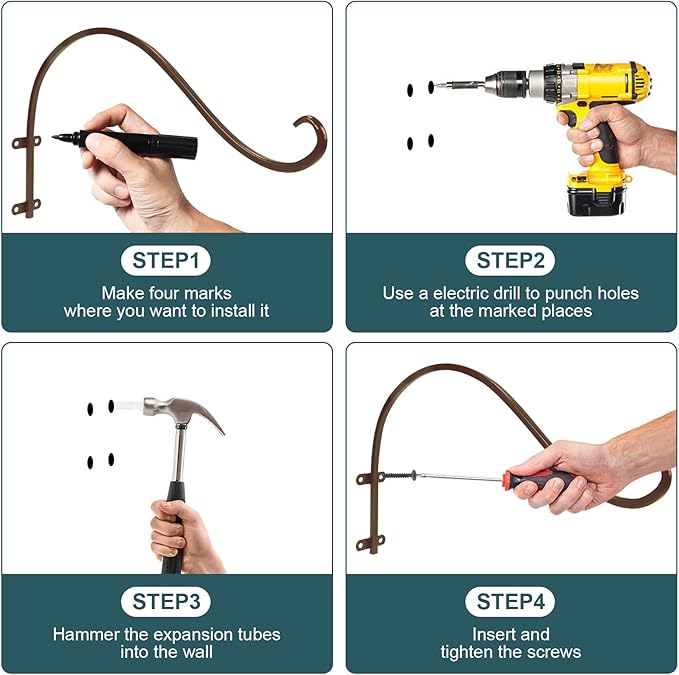 - ?�Stable Plant Hanger Hook??Four screws provide high load-bearing capacity and higher stability. Iron screws can not only withstand more weight without deformation, but also ensure that the plant wall hanger is more stable and not easily tilted. Plant hanging hook can better cope with windy weather, so it is suitable for outdoor use and is a good helper for decorating your courtyard.