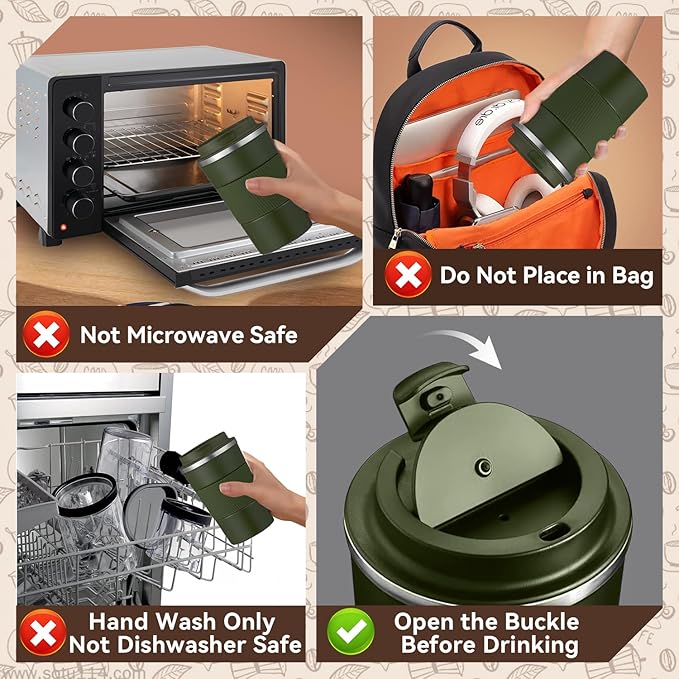 - Secure Leak-Proof Lid: The mug comes with a carefully designed BPA-free lid that forms a secure seal, significantly reducing the risk of spills or leaks during movement. Perfect for driving, commuting, or multitasking at your desk. You can toss it in your bag or backpack with confidence.