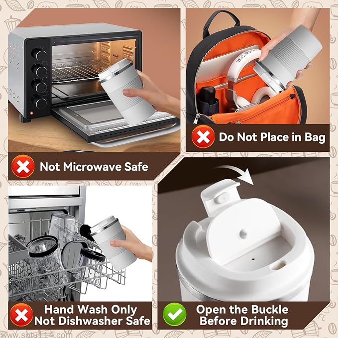 - Secure Leak-Proof Lid: The mug comes with a carefully designed BPA-free lid that forms a secure seal, significantly reducing the risk of spills or leaks during movement. Perfect for driving, commuting, or multitasking at your desk. You can toss it in your bag or backpack with confidence.