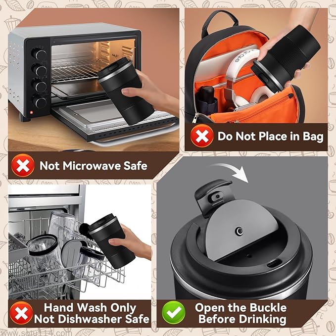 - Secure Leak-Proof Lid: The mug comes with a carefully designed BPA-free lid that forms a secure seal, significantly reducing the risk of spills or leaks during movement. Perfect for driving, commuting, or multitasking at your desk. You can toss it in your bag or backpack with confidence.