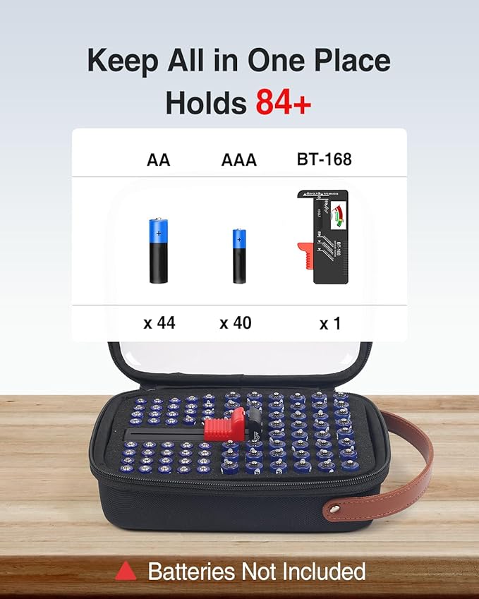 - 【Battery Storage with Tester】This battery organizer comes with a free battery tester. The tester helps you easily check the remaining power of batteries, ensuring you always use fresh ones and avoiding unexpected power outages