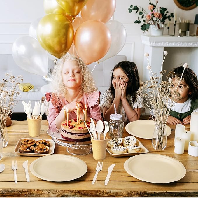 - 【Natural Material】Our disposable cutlery set made from Non-GMO Corn Starch. Tree-free, plastic-free, recyclable and natural
