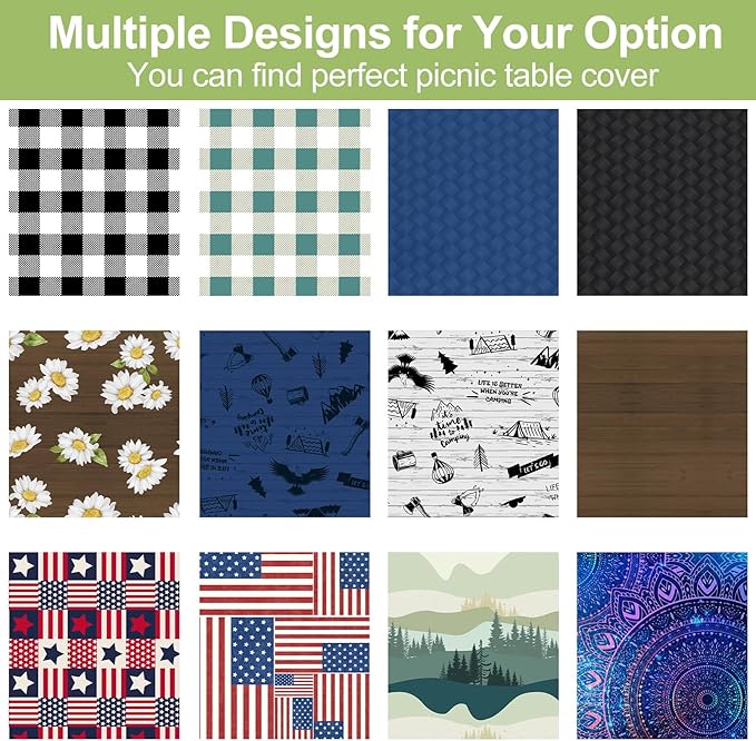 - 【EASY INSTALL & WINDPROOF】Both table cover and bench cover designed with all around elastic, not only can prevent unexpected movements and stay firm in windy conditions, but also easy to install and uninstall by yourself, so your happy picnic time won't be disturbed.