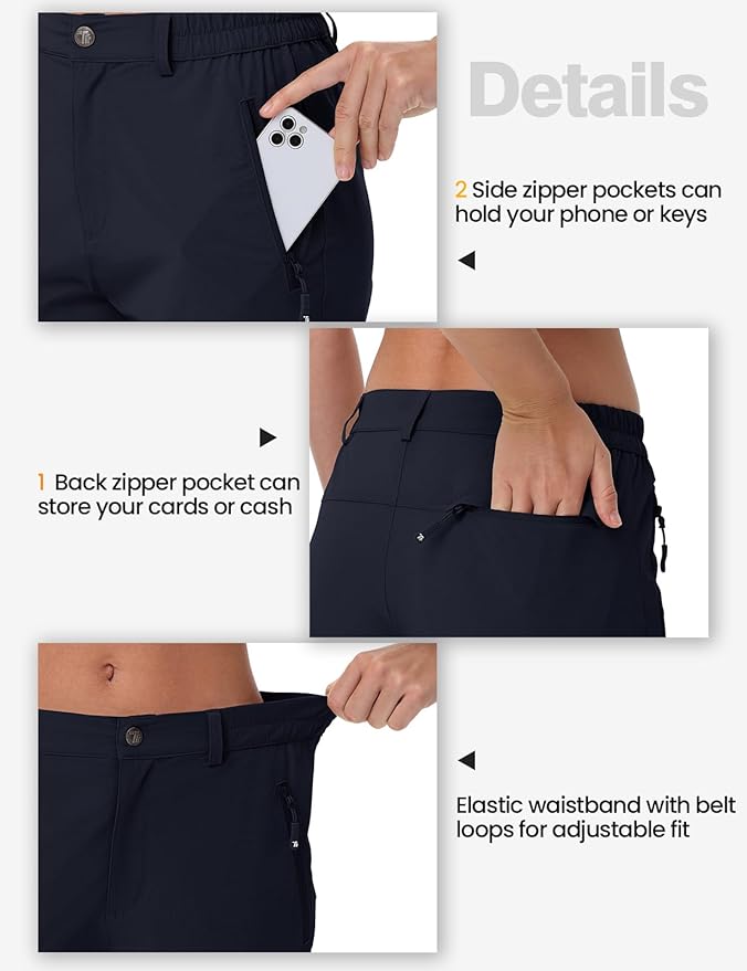 - Comfort Fit: Elastic waistband with belt loops provide a personalized fit without tightness. UPF 30+ protects from UV rays. Knee dart seams enhance mobility
