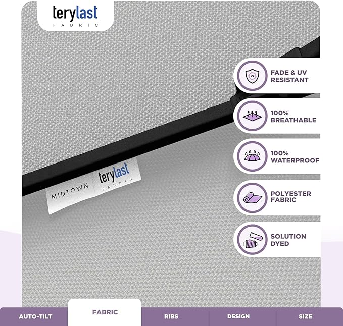 - Intelligent Design: Aluminum Pole: We don’t use rusting iron or steel! This pool umbrella has a thick 2.5mm wall that is rustproof and weather resistant that will provide peace of mind even under rainy weather. Both Terylast or Sunbrella fabrics are waterproof and solution dyed for optimal fade resistance under the beaming sun.