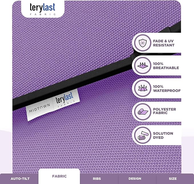 Midtown Umbrellas 10-Year-No-Fade - 9 Ft - UV Proof Purple Polyester Fabric - Umbrella Outdoor Patio, Auto-Tilt Aluminum Frame Patio Umbrella for Garden, Pool & Deck - Black Pole