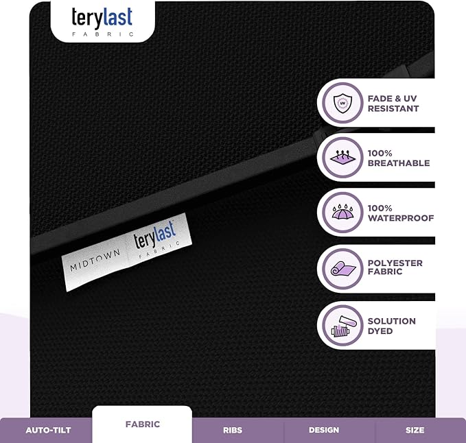 Midtown Umbrellas 10-Year-No-Fade - 9 Ft - UV Proof Ebony Black Polyester Fabric - Umbrella Outdoor Patio, Auto-Tilt Aluminum Frame Patio Umbrella for Garden, Pool & Deck - Black Pole