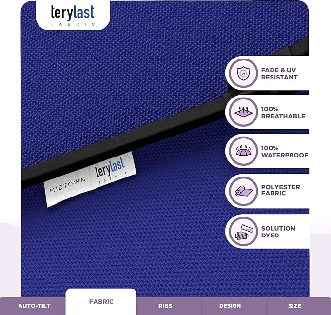 Midtown Umbrellas 10-Year-No-Fade - 9 Ft - UV Proof Midnight Blue Polyester Fabric - Umbrella Outdoor Patio, Auto-Tilt Aluminum Frame Patio Umbrella for Garden, Pool & Deck - Black Pole