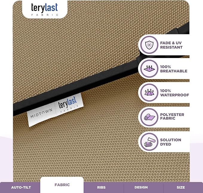 Midtown Umbrellas 10-Year-No-Fade - 9 Ft - UV Proof Beige Polyester Fabric - Umbrella Outdoor Patio, Auto-Tilt Aluminum Frame Patio Umbrella for Garden, Pool & Deck - Black Pole