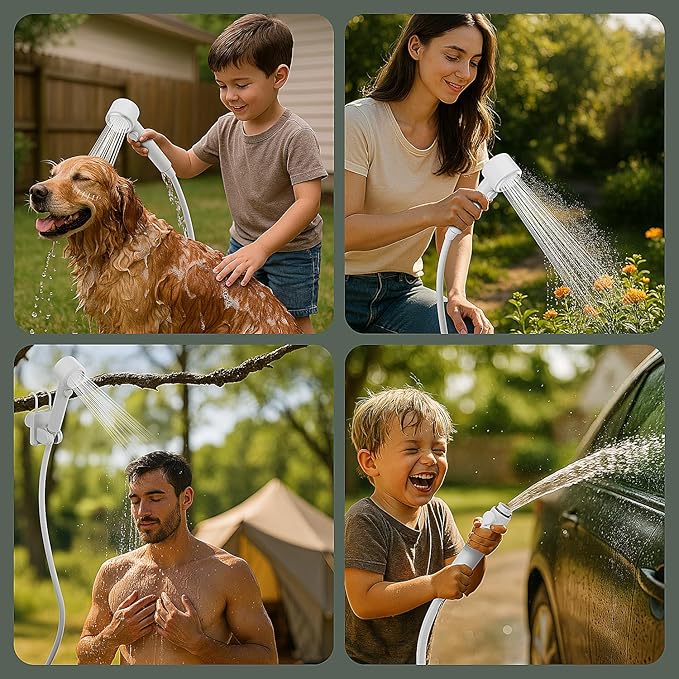 - 【4 Spray Modes & Easy Switching】Features four spray settings: Soft, General, Power, and Spray Gun (removable shower head). Easily switch between modes to get the perfect water flow for showering, cleaning, or other outdoor activities.