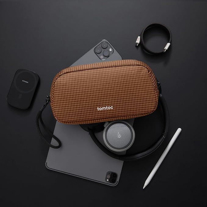 tomtoc Electronics Organizer Travel Case Performance, Water Resistant Bag Cable Tech Pouch Accessories, Carry Storage for Cord, Phone, Cables, Airpods, USB Flash Drive, Daily Items