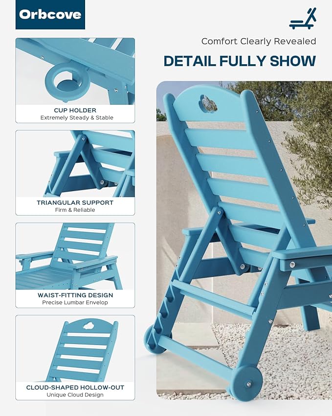 - Weatherproof HDPE: Outdoor chaise lounge Built with UV-resistant HDPE for fade-proof durability, ideal for poolside splashes or coastal climates.