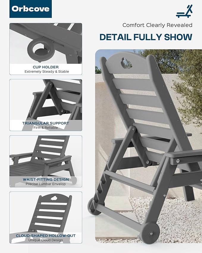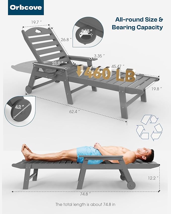 - Weatherproof HDPE: Outdoor chaise lounge Built with UV-resistant HDPE for fade-proof durability, ideal for poolside splashes or coastal climates.