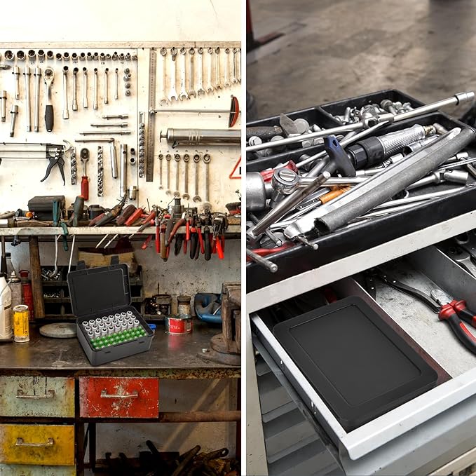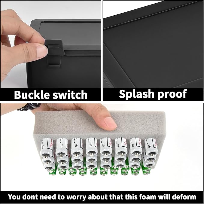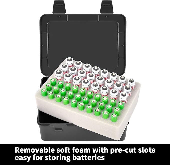 - Battery Storage Box: Battery holder case with thick and soft padding can fully protect your batteries. Detachable insert foam with well cut holes fits different-sized batteries snugly, also can tightly fix all batteries in the groove, avoid the friction between batteries.makes your mess battery regular and safe