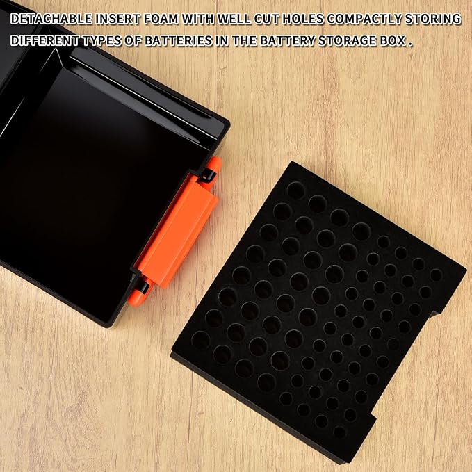 - Battery Storage Box: Battery holder case with thick and soft padding can fully protect your batteries. Detachable insert foam with well cut holes fits different-sized batteries snugly, also can tightly fix all batteries in the groove, avoid the friction between batteries.makes your mess battery regular and safe