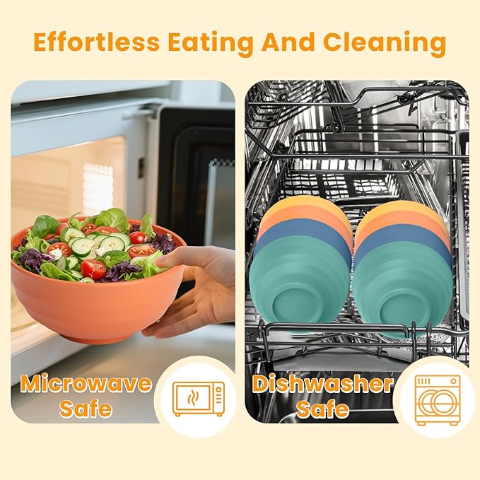 - PREMUIM WHEAT STRAW FIBER: Crafted from premium wheat straw fiber, our large bowls are a BPA-free & food-safe choice. Enjoy wheat straw bowls free from harmful chemicals, ensuring the health of you and your family, and meeting your daily dining needs
