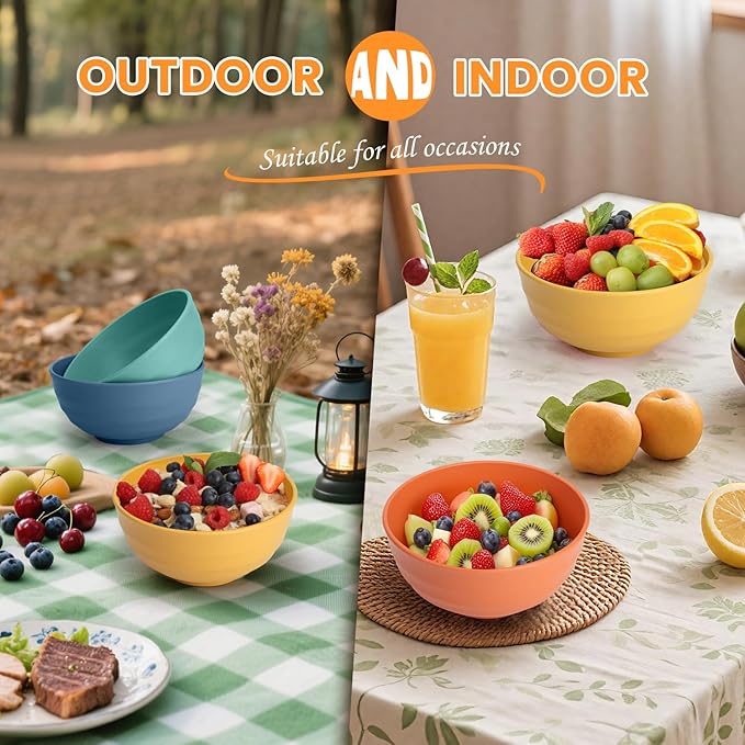 Homienly Wheat Straw Bowl Set, Large Salad Bowls Set of 8-60 OZ Large Capacity Big Bowls, Unbreakable Popcorn Bowl, Microwave and Dishwasher Safe Bowl for Kithchen, Camping, Party - Multi, Matte