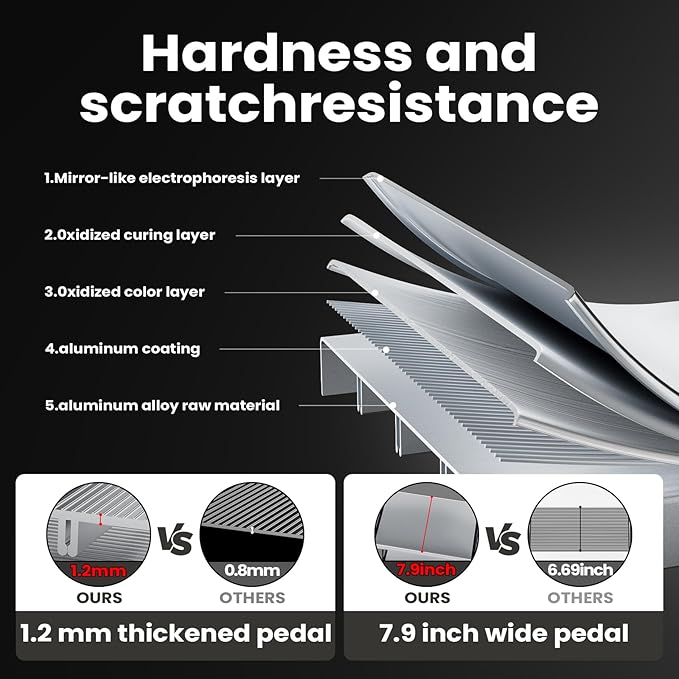 - ANTI-SLIP DESIGN: This remarkable features of large pedal is prominent parallel lines on the surface to prevent slipping. And wide pedals have ample spaces to stand firmly step by step.Also,rubber anti-slip feet increase friction with the ground to strenthen stability.Double protection provide you newly safety experince.