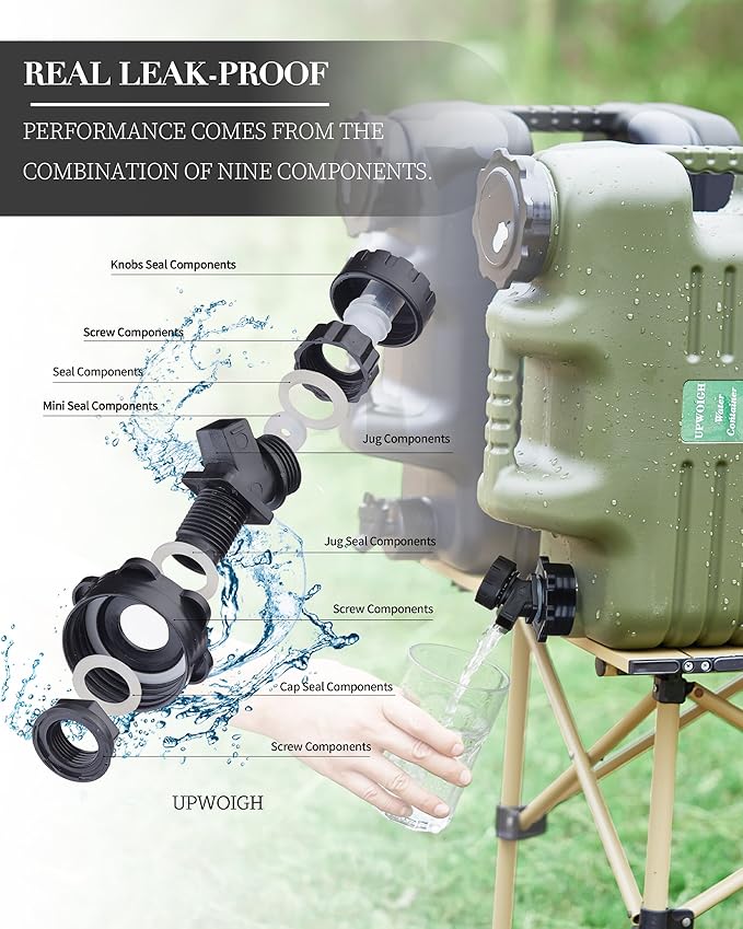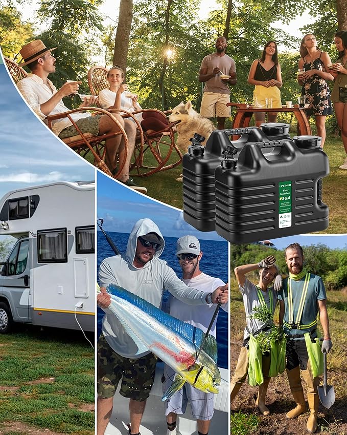 - Versatile Use for Camping & Emergency Preparedness:Ideal for outdoor adventures, survival situations, and water storage during power outages or natural disasters. With UPWOIGH 5-gallon water containers, stay prepared and hydrated wherever you go!