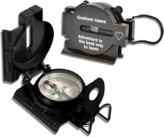 - Custom Brass Compass: This customizable compass strap will add more personal touches to your hiking trip. Click "Customize Now" to upload the text you want to customize, whether it is your name, initials or your favorite design, we will help you realize it. It is an ideal land navigation device for hikers, campers, scouts and survivalists, meeting the needs of different outdoor enthusiasts.