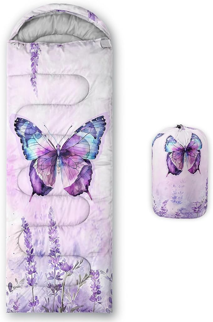 - 【Fashion Design】Animal sleeping bags for kids feature a butterfly and lavender,which suitable for girls who like butterflies.As backpacking essentials for hiking,this cold weather sleeping bag is lightweight and waterproof,you can give this hiking sleeping bag as a gift to your family or friends.