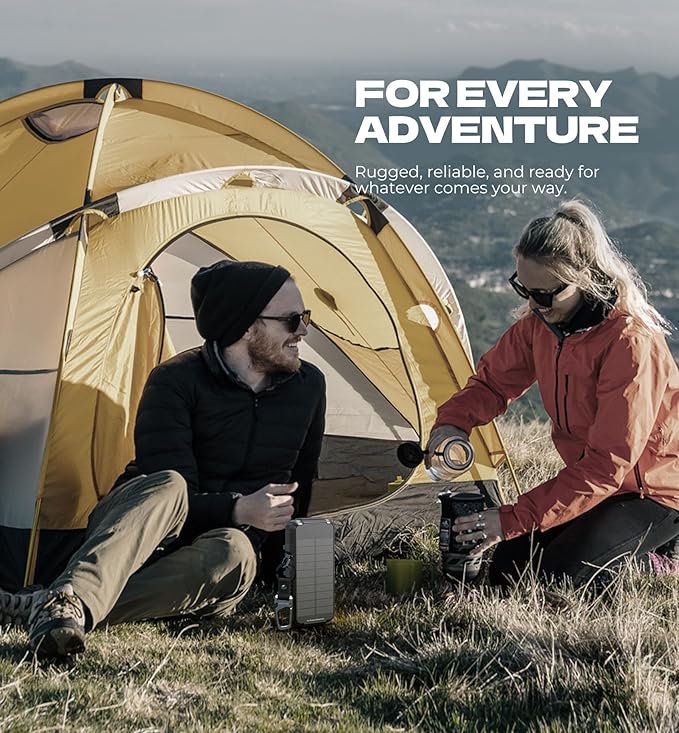- Dual recharging options: Stay charged anytime, anywhere with this portable solar charger; It can be charged via the built-in solar panel in about 50 hours of direct sunlight, or you can quickly top it off with the included Type-C cable in just 3 hours; Please note the cable charging requires a 45W adapter (not included).