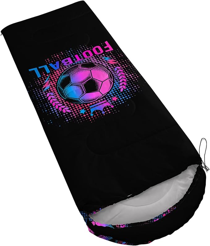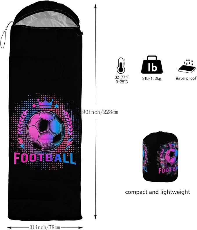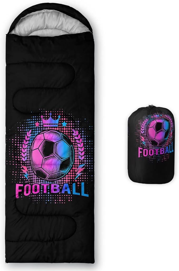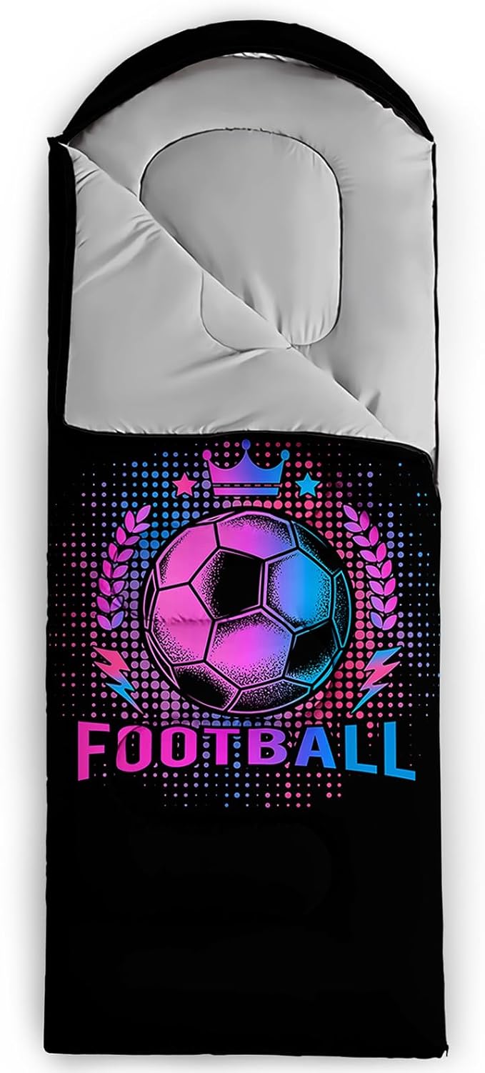 - 【Fashion Design】The sport-themed sleeping bag is made of lightweight and comfortable material,making it suitable for camping.This boys sleeping bag is a good choice for kids who love sports,especially those who love football.As camping essentials,this hiking sleeping bag can satisfy them.