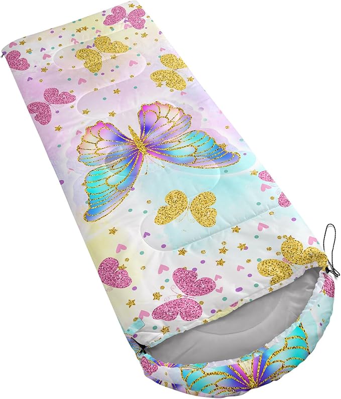 - 【Fashion Design】This is an animal-themed sleeping bag printed with colorful butterfly parttern.This camping sleeping bag uses comfortable fabric to make you feel warm and comfortable.As camping essentials,you can give this hiking sleeping bag as a gift to your family or friends.