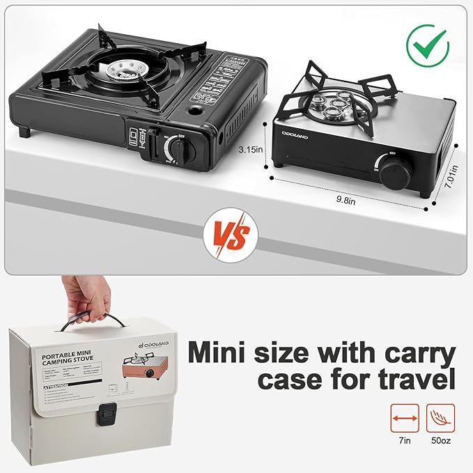 Odoland Portable Camping Stove 7500 BTU Camp Stove Lightweight Butane Gas Stove for Camping Cooking Outdoor Backpacking and Picnic (Black)