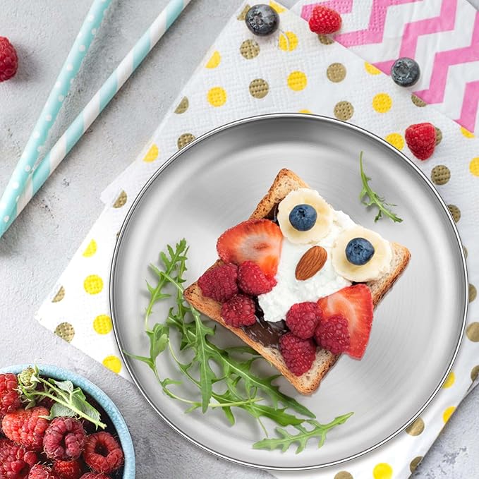 - Useful, unbreakable stainless steel plates for kids serving dishes set is safe to use in freezer, oven for your different needs, suitable for indoor and outdoor using, work well in serving pancakes steak sandwich pasta pizza salad dessert snack, for camping party barbecue picnic, also an ideal gift for your family and friends