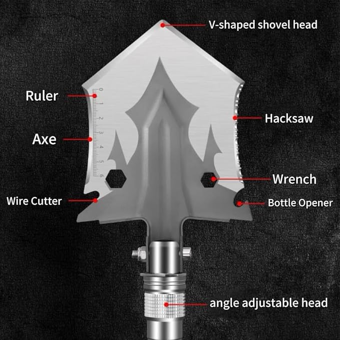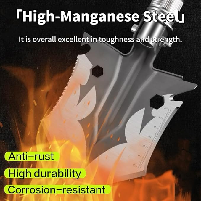 - 【Versatile Survival Multi-Tool】 The Nordpeak survival shovel combines rugged functionality with compact design, engineered for camping, hiking, and off-roading. Its sharp-edged blade handles digging, tent setup, and material penetration, while integrated accessories - including a saw, ruler, wrenches, knife, bottle opener, and emergency glass-breaker - deliver 16-in-1 preparedness. The ultimate outdoor companion for tackling soft terrain, frozen ground, and survival scenarios alike
